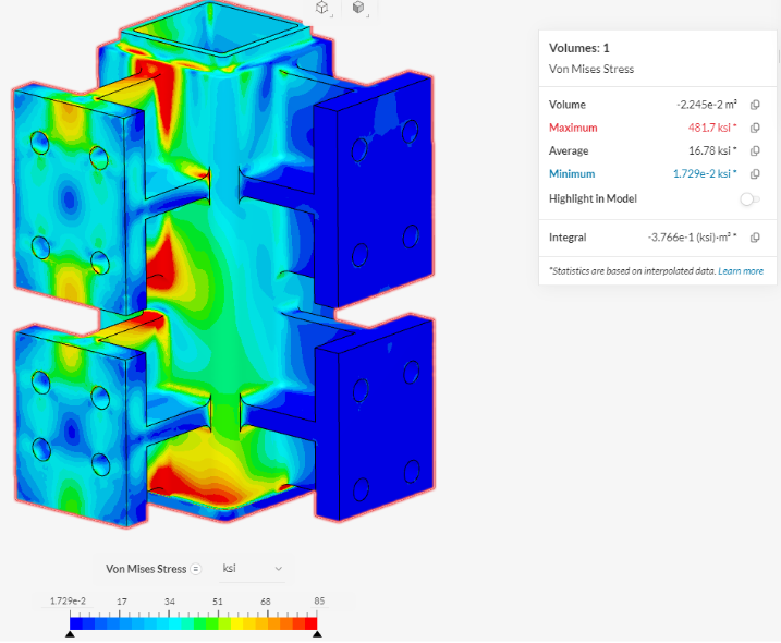 I led the structural modeling efforts using SolidWorks Simulation and ANSYS FEA, performing a series of nonlinear load tests and buckling analyses on the connection node and surrounding chassis frame.
