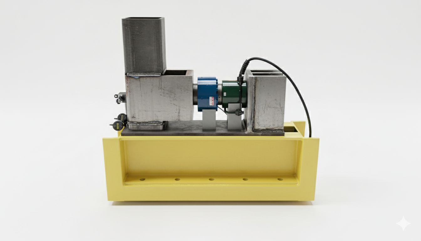 In-house load testing setup on a calibrated steel test rig used for validation.